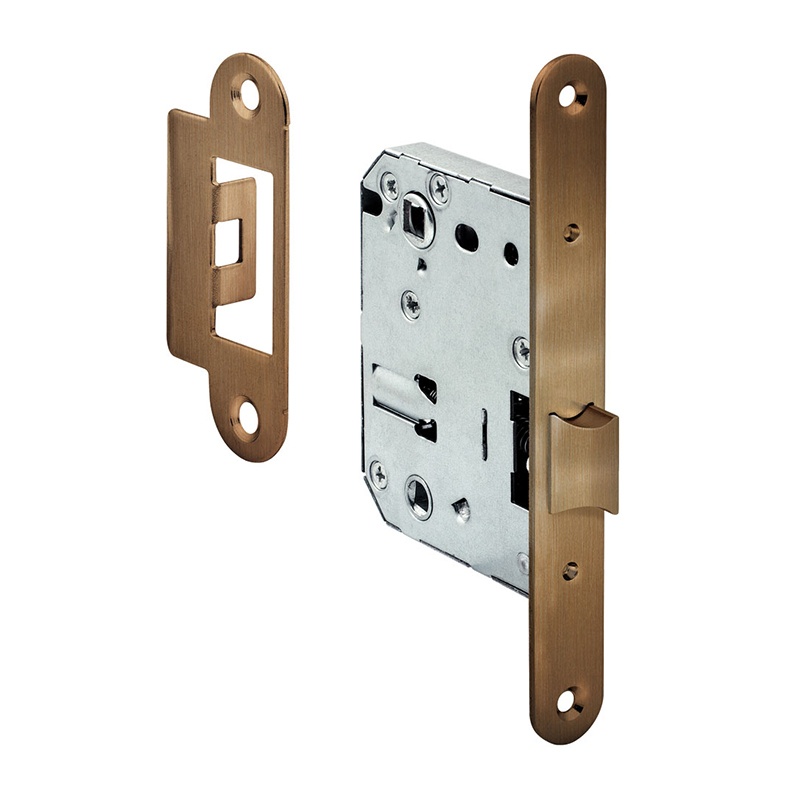 Предназначен для установки на межкомнатные двери. Запирается WC заверткой. Сторонность замка может быть изменена путем вытягивания и поворота косого ригеля на 180 градусов. Материал — сталь.