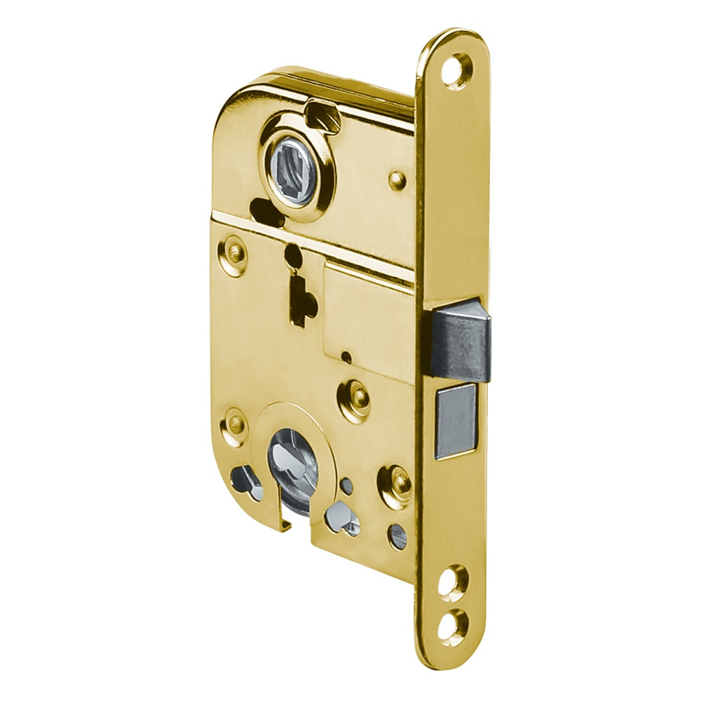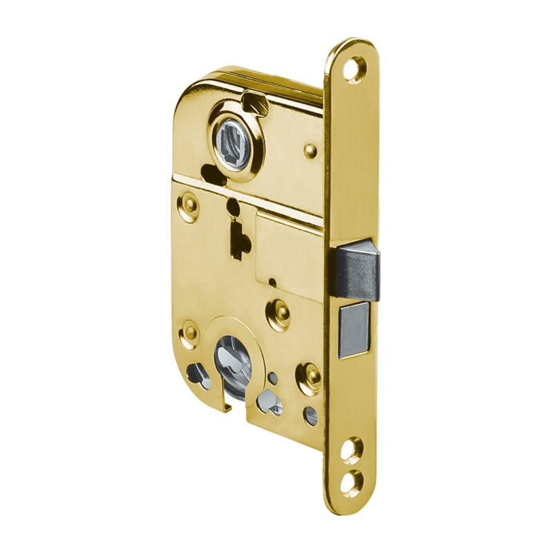 Предназначен для фиксации двери в закрытом состоянии, а также позволяет производить запирание дверного полотна на ключ. Корпус замка под цилиндровый механизм. Сторонность замка может быть изменена вытягиванием и поворотом защелки на 180 градусов.
