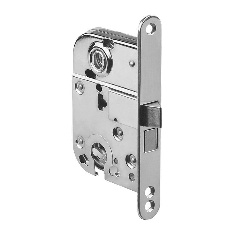 Предназначен для фиксации двери в закрытом состоянии, а также позволяет производить запирание дверного полотна на ключ. Корпус замка под цилиндровый механизм. Сторонность замка может быть изменена вытягиванием и поворотом защелки на 180 градусов.