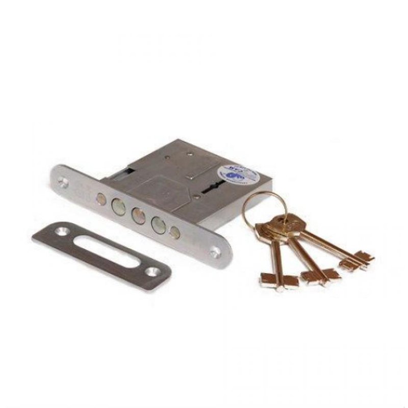 Предназначен для установки в межкомнатные двери, фиксирует их в закрытом состоянии, а также позволяет производить запирание дверного полотна на ключ.