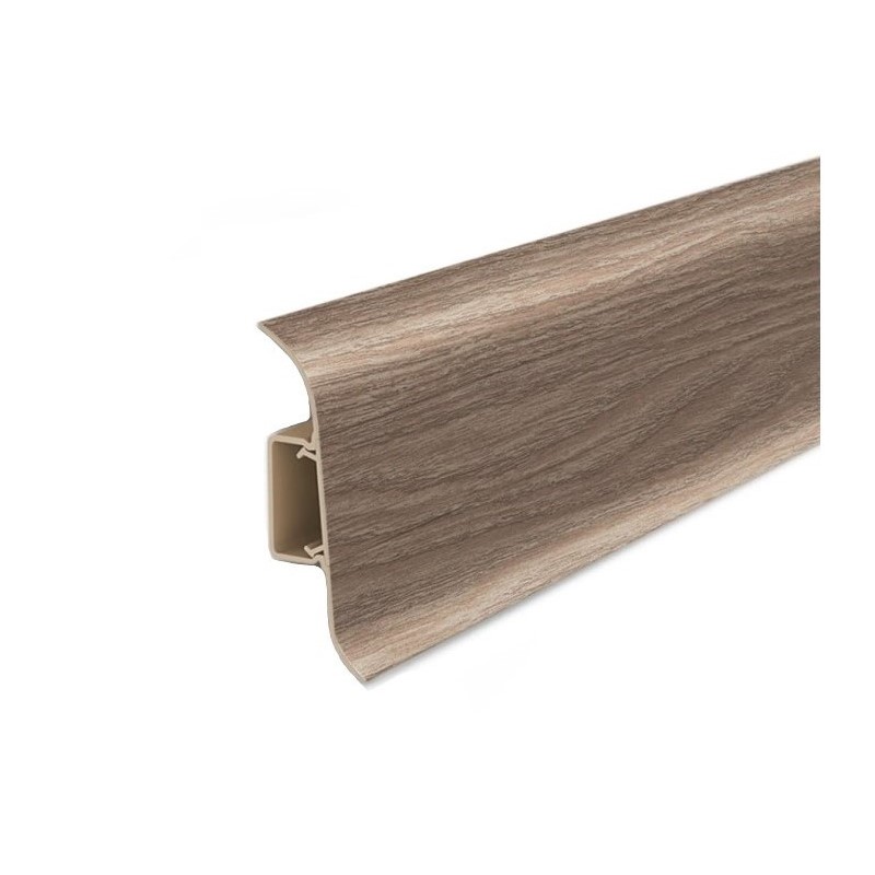 Предназначен для отделки, укладывается по периметру помещения между напольным покрытием и стеной. Плинтус имеет кабель-канал, в котором можно проложить силовой, компьютерный, телевизионный и др. кабели. Мягкий обрезиненный край плинтуса предотвращает попадание влаги и пыли между стеной и полом.