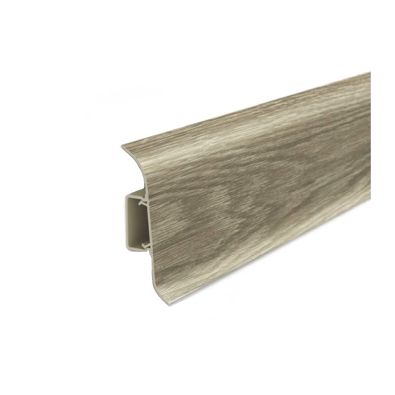 Предназначен для отделки, укладывается по периметру помещения между напольным покрытием и стеной. Плинтус имеет кабель-канал, в котором можно проложить силовой, компьютерный, телевизионный и др. кабели. Мягкий обрезиненный край плинтуса предотвращает попадание влаги и пыли между стеной и полом.