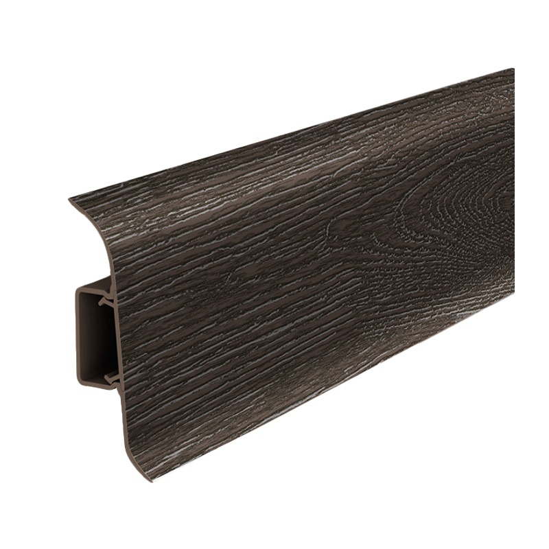 Предназначен для отделки, укладывается по периметру помещения между напольным покрытием и стеной. Плинтус имеет кабель-канал, в котором можно проложить силовой, компьютерный, телевизионный и др. кабели. Мягкий обрезиненный край плинтуса предотвращает попадание влаги и пыли между стеной и полом.