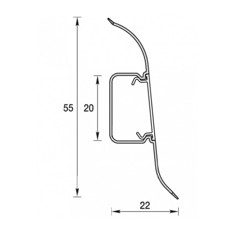 Предназначен для отделки, укладывается по периметру помещения между напольным покрытием и стеной. Плинтус имеет кабель-канал, в котором можно проложить силовой, компьютерный, телевизионный и др. кабели. Мягкий обрезиненный край плинтуса предотвращает попадание влаги и пыли между стеной и полом.