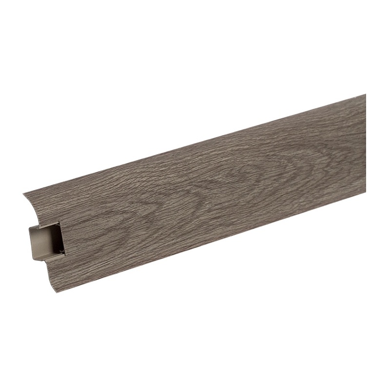 Предназначен для отделки, укладывается по периметру помещения между напольным покрытием и стеной. Плинтус имеет кабель-канал, в котором можно проложить силовой, компьютерный, телевизионный и др. кабели. Мягкий обрезиненный край плинтуса предотвращает попадание влаги и пыли между стеной и полом.