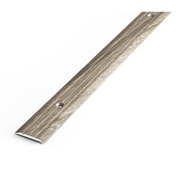 Предназначен для декоративной отделки стыков между различными напольными покрытиями. Комплектуется саморезами и дюбелями. Окрашен под структуру дерева.
