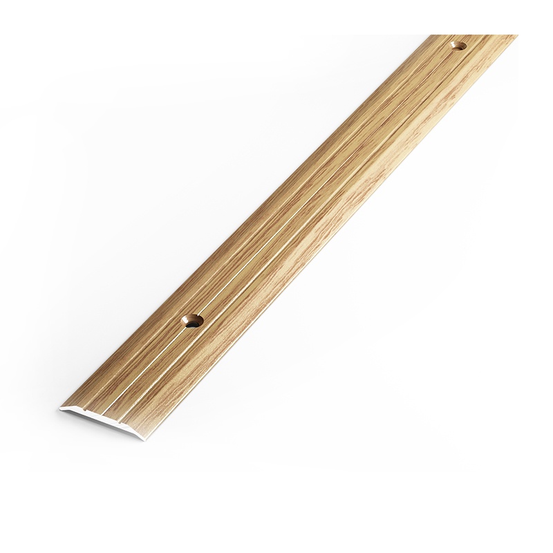 Предназначен для декоративной отделки стыков между различными напольными покрытиями. Комплектуется саморезами и дюбелями. Окрашен под структуру дерева.