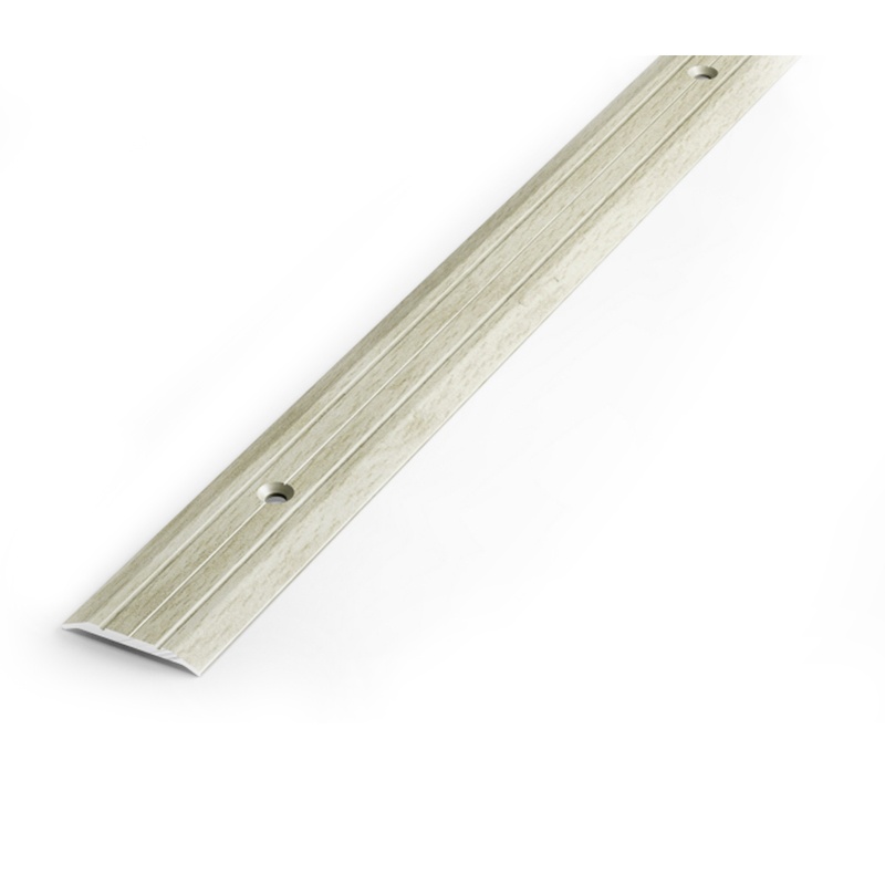 Предназначен для декоративной отделки стыков между различными напольными покрытиями. Комплектуется саморезами и дюбелями. Окрашен под структуру дерева.