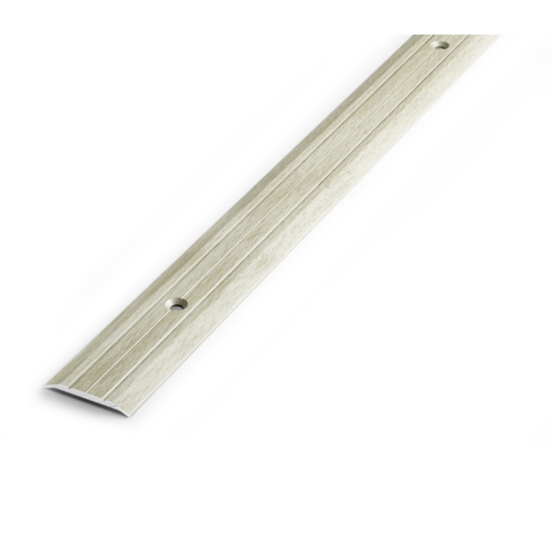 Предназначен для декоративной отделки стыков между различными напольными покрытиями. Комплектуется саморезами и дюбелями. Окрашен под структуру дерева.