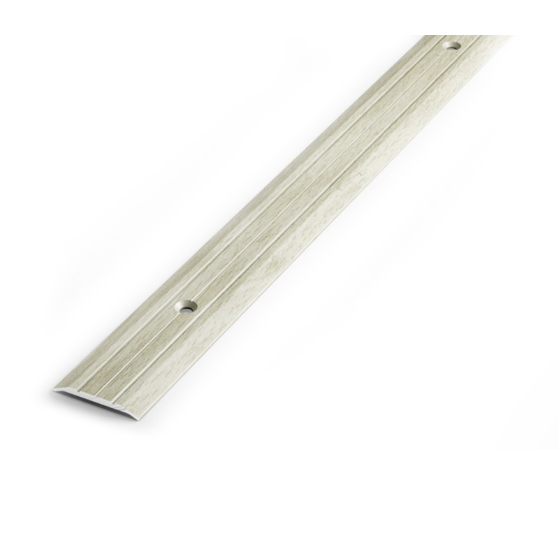 Предназначен для декоративной отделки стыков между различными напольными покрытиями. Комплектуется саморезами и дюбелями. Окрашен под структуру дерева.
