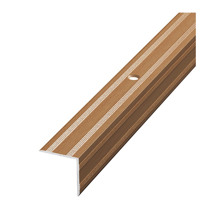 Предназначен для декоративной отделки углов ступеней. Комплектуется саморезами и дюбелями. Окрашен под структуру дерева.