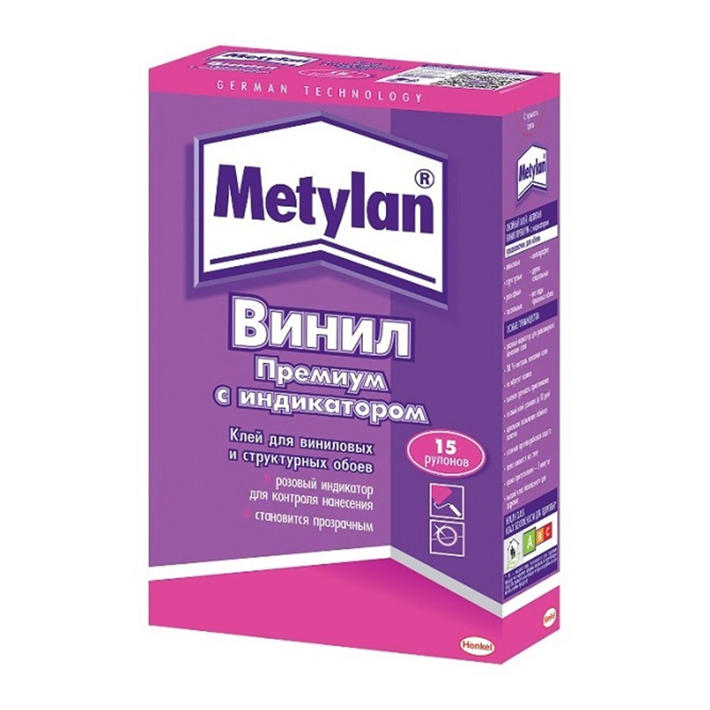 Предназначен для наклеивания виниловых, структурных, рельефных, текстильныз, шелкографии, а также для всех видов бумажных обоев. Высококачественный, быстрорастворимый клей на основе модифицированного крахмала и противогрибковых добавок. Содержит уникальный цветовой индикатор, позволяющий отслеживать равномерность нанесения клеевого слоя. В процессе высыхания клей становится прозрачным.