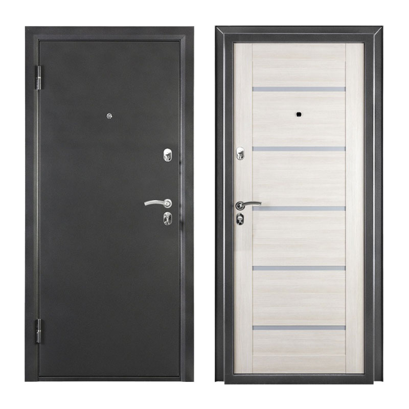 Предназначена для установки в жилых и общественных зданиях в качестве входной двери как внутри помещения, так и снаружи. Внешняя накладка из металла в цвете серебро антик. Внутренняя — венге, дуб беленый. Алюминиевые молдинги. Нижний замок цилиндровый BORDER 2 класс. Верхний замок сувальдный BORDER 2 класс. Замки размещаются в пенополистирольный карман, что позволяет сохранить тепло и звукоизоляцию полотна в замковой зоне.
