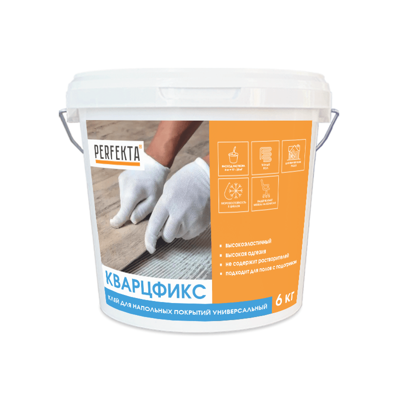 Предназначен для приклеивания различных гибких напольных покрытий – рулонных ПВХ покрытий, в том числе на вспененной основе, ПВХ и кварцвиниловых плиток, пробковых плиток на ПВХ основе и ковровых плиток на различных основах, практически всех видов линолеума, ковролина и иглопробивных рулонных напольных покрытий на разных подосновах: вспененной, джутовой, войлочной и тканой подоснове к впитывающим влагу поверхностям.