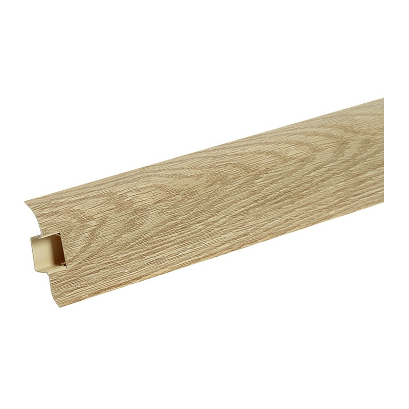 Предназначен для отделки, укладывается по периметру помещения между напольным покрытием и стеной. Плинтус имеет кабель-канал, в котором можно проложить силовой, компьютерный, телевизионный и др. кабели. Мягкий обрезиненный край плинтуса предотвращает попадание влаги и пыли между стеной и полом.