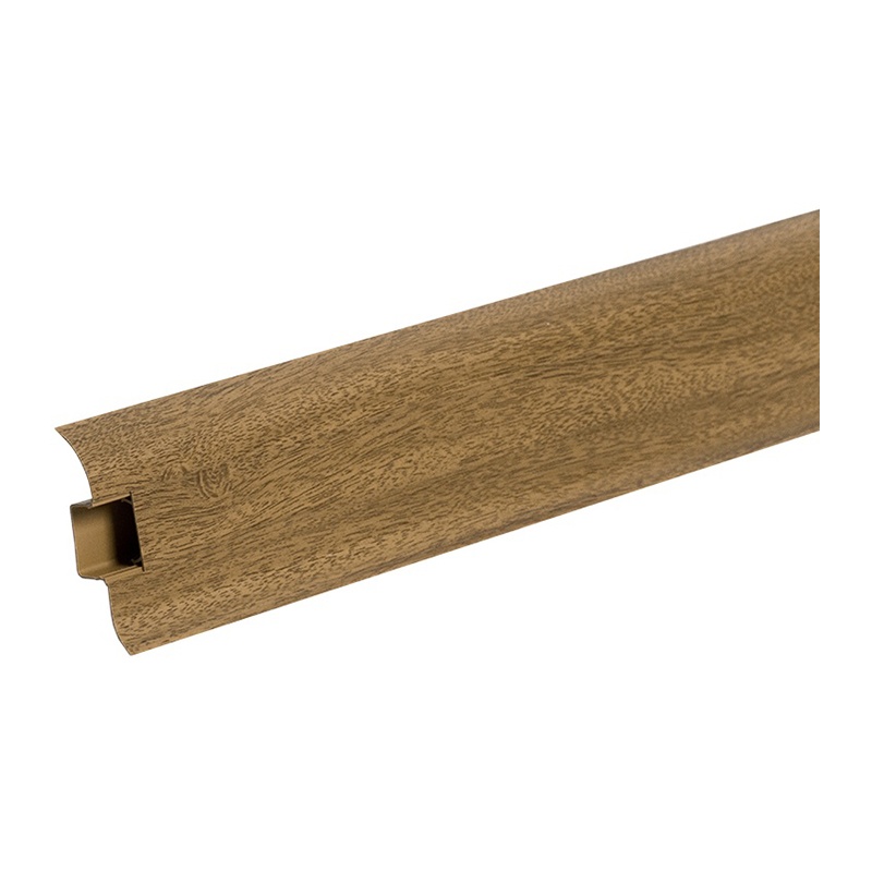Предназначен для отделки, укладывается по периметру помещения между напольным покрытием и стеной. Плинтус имеет кабель-канал, в котором можно проложить силовой, компьютерный, телевизионный и др. кабели. Мягкий обрезиненный край плинтуса предотвращает попадание влаги и пыли между стеной и полом.