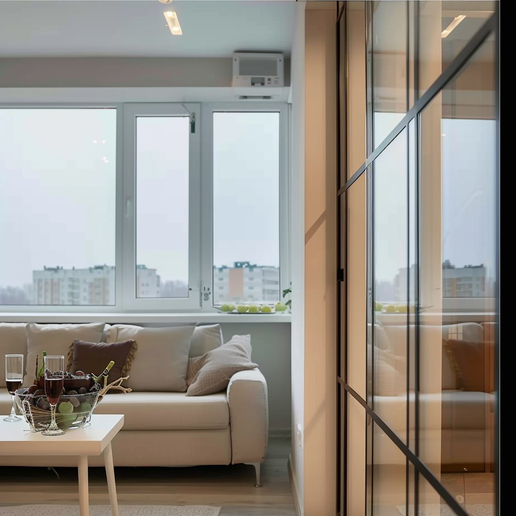 Blitz. Это классический бюджетный вариант, хорошо известный покупателям. Состоит из трех камер, толщина — 60 миллиметров. Штапики скошенные, с углом 15 градусов, уплотнитель — двухконтурный. Профили обычно устанавливают в дачных домиках, на балконах или лоджиях, а также в нежилых помещениях — на складах, в цехах.
