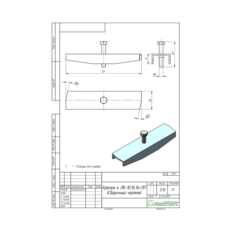 Предназначен для крепления чугунной, стальной и пластиковой решетки к водоотводным пластиковым лоткам и пластиковому пескоуловителю, для защиты от сдвига решетки с лотка.