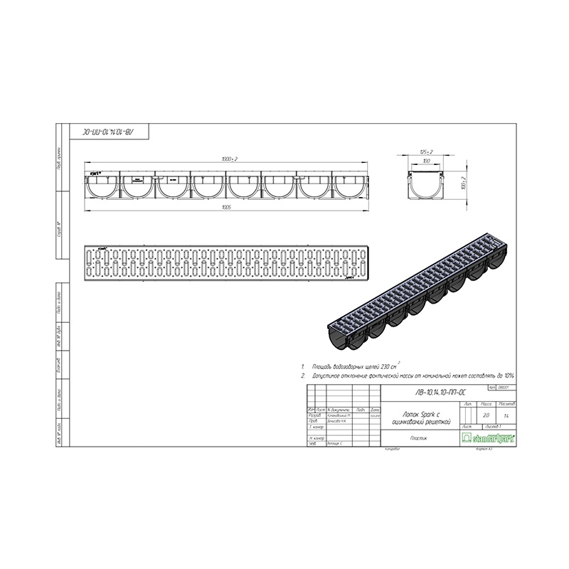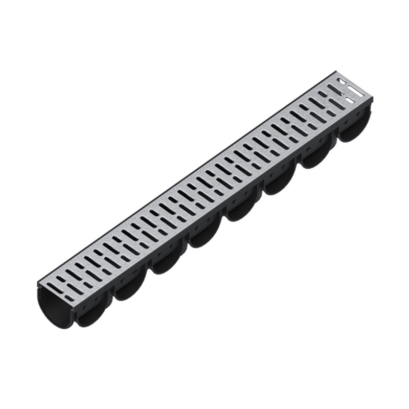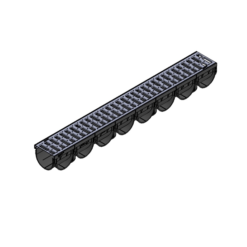 Предназначен для устройства поверхностного водоотвода с территорий подверженных средним нагрузкам — тротуары, пешеходные зоны, велосипедные дорожки, приусадебные участки и др. Гидравлическое сечение лотка DN100. Поставляется в комплекте со стальной оцинкованной решеткой. Выдерживает нагрузки в диапазоне классов А15. Имеет выходы для подсоединения канализационной трубы d=60-110мм, других лотков этой же серии, а также пескоуловителей и дождеприемников.