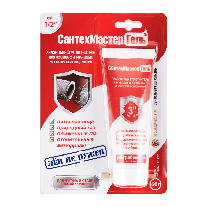Предназначен для резьбовых соединений из черного металла. Этот анаэробный герметик отлично подходит для сверхпрочной фиксации и герметизации резьбы и фитингов в трубопроводах, собранных с использованием черных металлов. Используется для соединения труб диаметром от 1/2 дюймов. Герметизация с помощью этого геля-герметика настолько сильная, что при демонтаже соединение приходится подогревать. Состав рекомендуется использовать там, где необходим срочный запуск системы (общее время полимеризации геля не превышает 5 минут) при температуре окружающей среды от + 5 °C. Диапазон рабочих температур от -60 до +150°C.