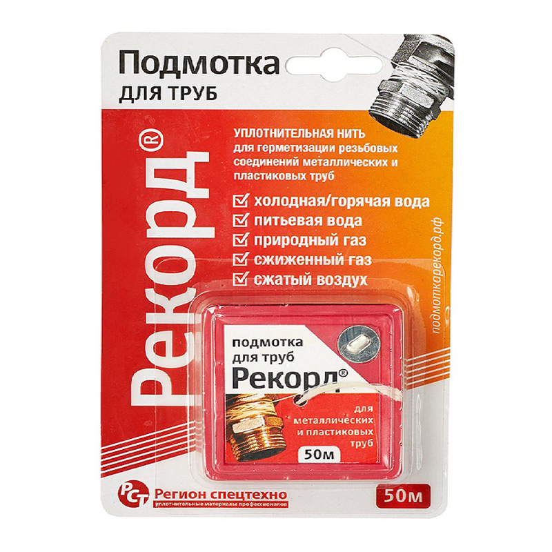 Предназначена для герметизации и уплотнения резьбовых соединений, металлических и пластиковых труб. Продукт имеет СЭЗ на применение в системах с горячей и холодной питьевой водой. С помощью нити «Рекорд» можно уплотнять ржавые, мокрые, загрязненные, частично разрушенные резьбы без предварительной обработки соединения. Диапазон рабочих температур уплотнительной нити от -60 до +120 градусов.