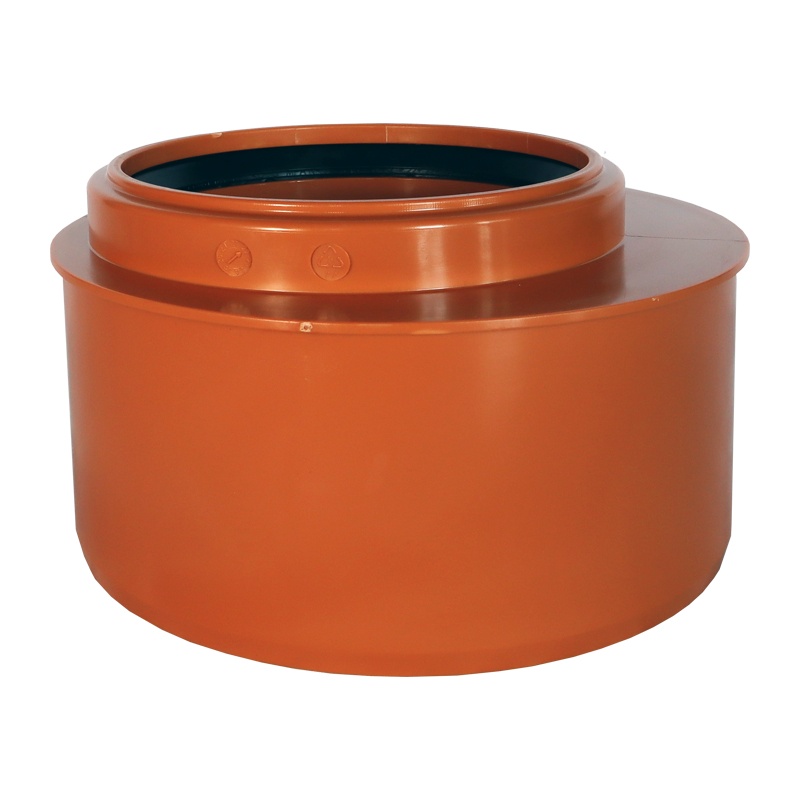 Используется для соединения труб различного диаметра. Изготовлена из полипропилена гомополимера (ПП-H) без добавления вторичного сырья. Предназначена для прокладки в системах наружной канализации. Ориентировочная предельная глубина заложения трубопровода из полипропилена при средней транспортной нагрузке составляет 5-6 м в зависимости от плотности засыпки.Стойкость к ударному воздействию при низких температурах. Стойкость к высокой температуре сточных вод до 95 градусов С. Химическая устойчивость фасонных частей и уплотнителей сохраняется для сточных вод со значением рН 2-12. Рабочее давление до 0,5 бар. Стойкость к гидрообразивному износу. Низкий коэффициент шероховатости дает возможность использования минимальных уклонов, практически отсутствует зарастание труб. Однолепестковые уплотнения из SBR резины. Способ соединения – раструбное.