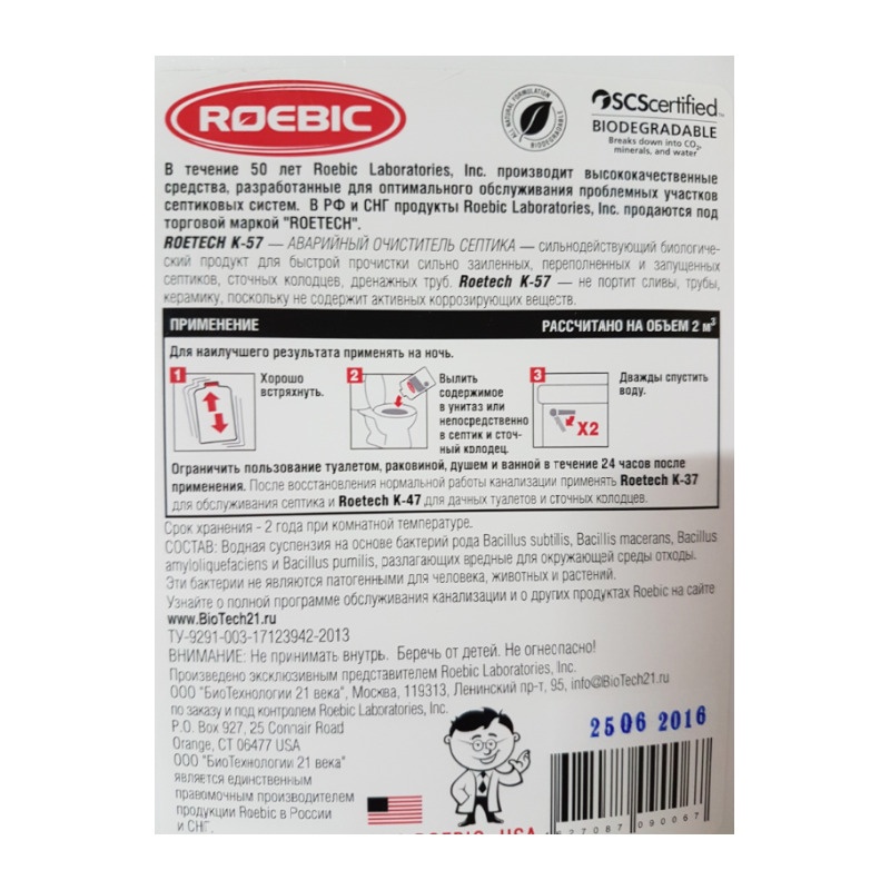 Предназначено для быстрой прочистки сильно заиленных, переполненных и запущенных септиков, сточных колодцев, дренажных труб. Объем 946 мл очищает резервуар 2 м3.