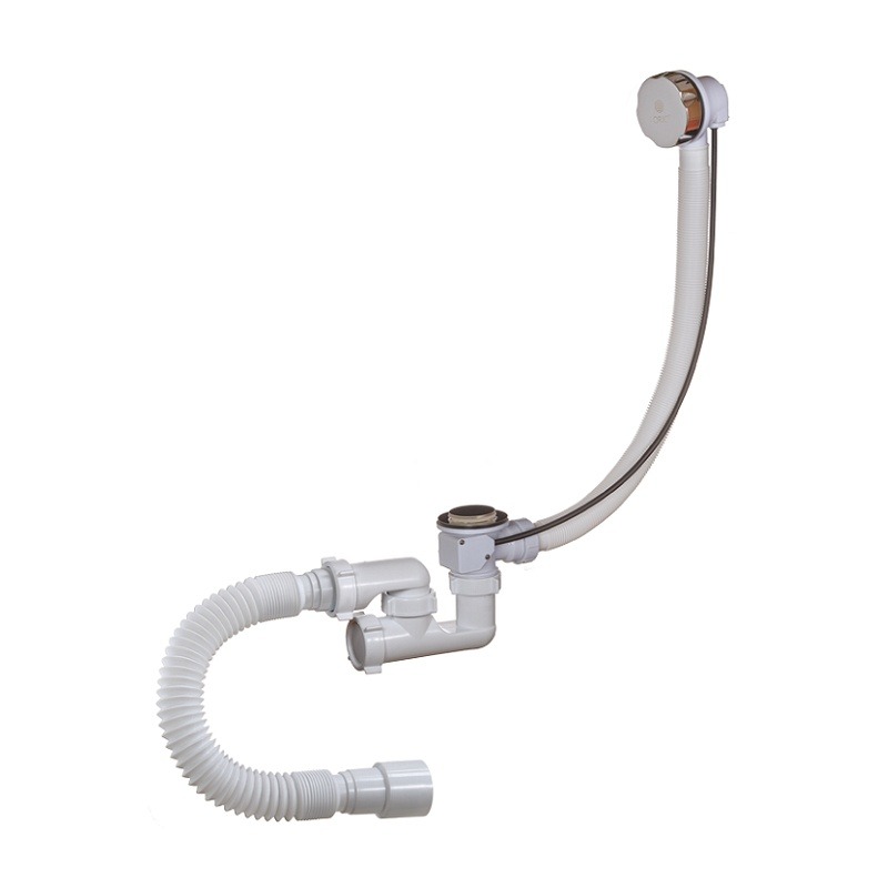 Предназначен для автоматического запирания и отпирания стоков воды. Управление процессом запирания и отпирания выполняется при помощи маховика, связанного торсионной связью с клапаном запирания стока. Декоративная накладка на перелив выполнена из пластика,покрытого хромом. Решетка сливного отверстия из нержавеющей стали диаметром 70 мм. Слив-перелив имеет сифон прямоточного типа. Комплектуется гофрированной трубкой длиной 370 мм с универсальным выпуском 40/50 мм и пробкой.