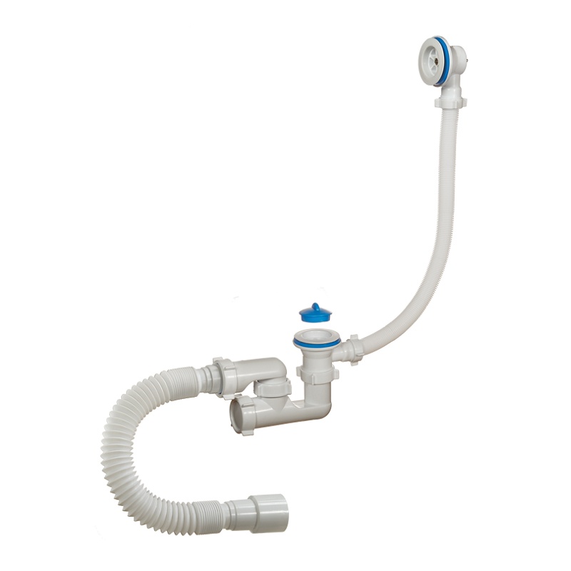 Предназначен для отведения воды из ванны в канализацию, а также для слива из ванны избыточной воды. Когда вода в ванне достигает критического уровня, она по обвязке стекает в канализацию. Решетки сливного и переливного отверстий сделаны из белого пластика. Слив-перелив имеет регулируемый сифон, что позволяет облегчить процесс монтажа с возможностью регулировать направление слива воды и проводить ревизию для чистки сифона. Комплектуется гофрированной трубкой длиной 370 мм с универсальным выпуском 40/50 мм и пробкой.