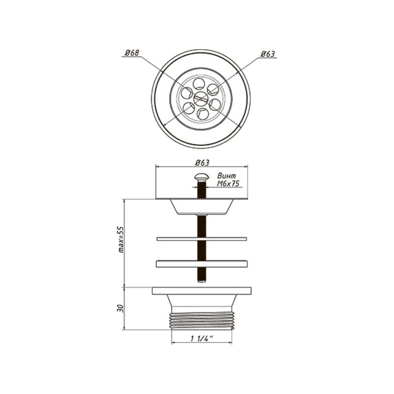 Предназначен для установки в сантехприборы (раковины, мойки) и служит для водоотведения. Полипропиленовый корпус исключает появление трещин от усталости и температурных колебаний. Не подвержен коррозии, а прокладка из термоэластопласта гарантирует отсутствие протечек в широком диапазоне температур. С нержавеющей решеткой диаметром 63 мм
