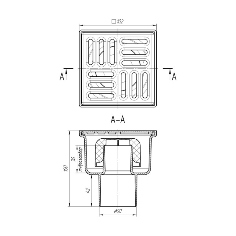 Трап Ани Пласт вертикальный d=50 мм 100х100 мм, не регулируемый