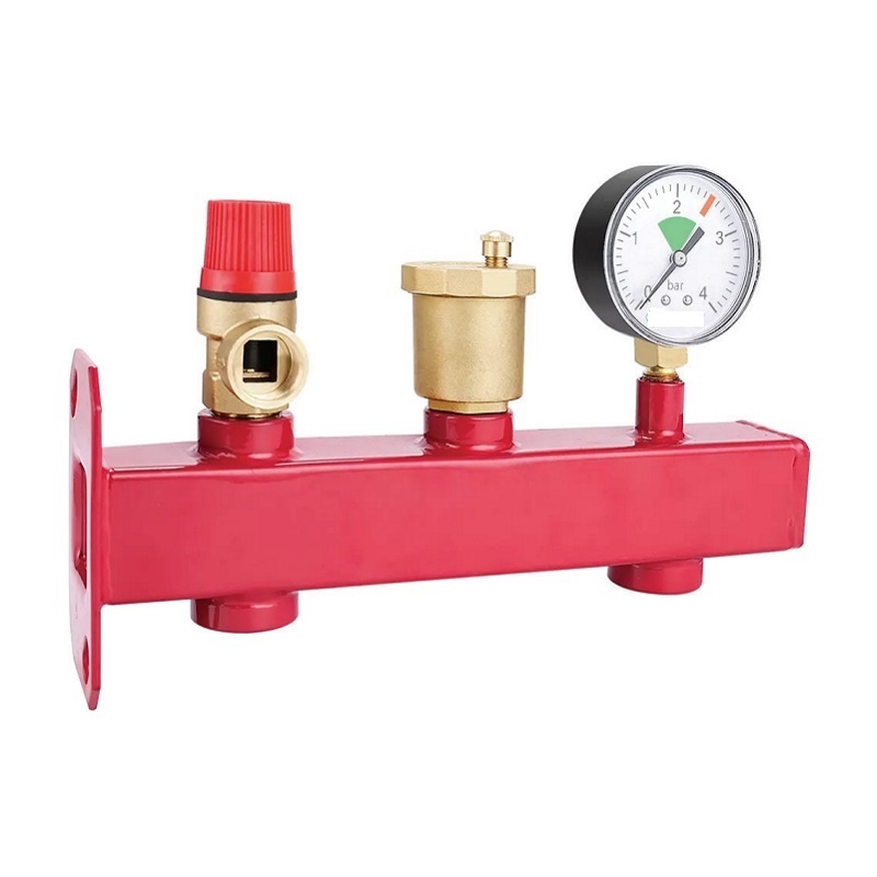 Предназначена для защиты закрытой системы отопления от превышения допустимого давления теплоносителя и завоздушивания, а также, для крепления мембранного бака объемом до 50л. Имеет фланец для консольного крепления к стене. Консоль оснащена двумя патрубками: для присоединения к системе отопления имеет наружную резьбу 3/4″ (20мм) и для подключения мембранного бака имеет внутреннюю резьбу 3/4″ (20 мм). В комплект входит автоматический воздухоотводчик, предохранительный клапан и манометр.