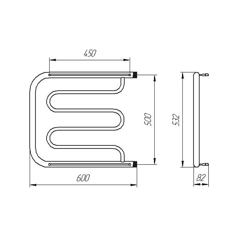 Предназначен для сушки белья, поддержания необходимой температуры и влажности в ванной комнате. Классический дизайн. Две полки. Поддерживает необходимый температурный режим и влажность, тем самым, препятствуя образованию плесени, сырости и грибка. Наличие полочек и змейки позволяет одновременно просушивать большее кол-во белья (по сравнению с М и П-образными п/с), включая маленького и среднего размера полотенца.