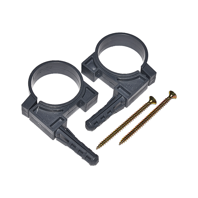 Предназначен для крепления к основанию канализационных труб. Расстояние между хомутами должно составлять: для горизонтальных линий 10 диаметров прокладываемой трубы, для вертикальных линий (для стояков) 1-2 м.