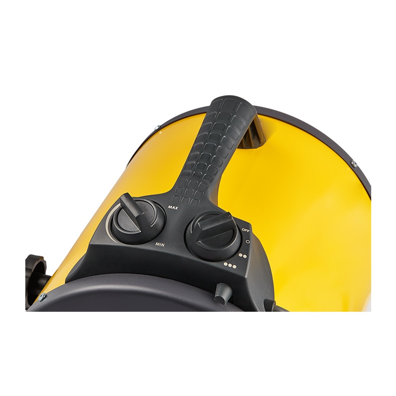 Предназначена для быстрого и эффективного обогрева помещений. Представляет собой тепловентилятор, помещенный в надежный корпус с антикоррозионным покрытием и регулируемым углом наклона. За счет своего строения, пушка выдает направленный поток горячего воздуха. Эргономичная ручка-подставка позволяет установить прибор в любом удобном месте помещения. В качестве нагревательного элемента в тепловой пушке используется высокоэффективный спиральный ТЭН из нержавеющей стали. В приборе предусмотрено ступенчатое регулирование мощности нагрева, а также возможность работы без нагрева (вентиляция). Прибор поставляется с кабелем без вилки. Сечение провода, подводимого к розетке от щита питания, должно быть не менее 2,5 мм2 для медного провода и не менее 4,0 мм2 для алюминиевого провода. В щите питания должны иметься плавкие вставки или автоматические выключатели на 25 А для защиты электропроводки от перегрузок.