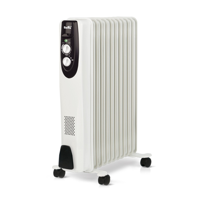 Предназначен для обогрева различных помещений. Полая герметичная металлическая конструкция наполнена специальным минеральным маслом. В качестве нагревательного элемента используется ТЭН с тремя ступенями мощности и расположенный в нижней части радиатора. Устройство работает от сети 220В. Площадь обогрева: 20-25м2