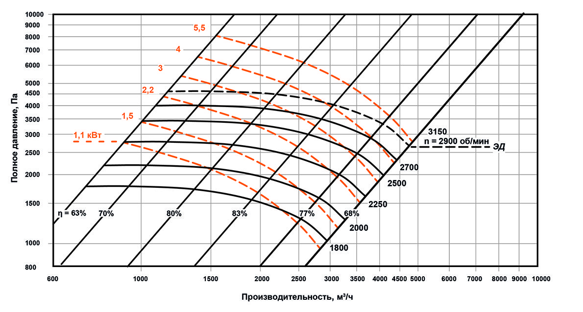 • Назад загнутые лопасти рабочего колеса