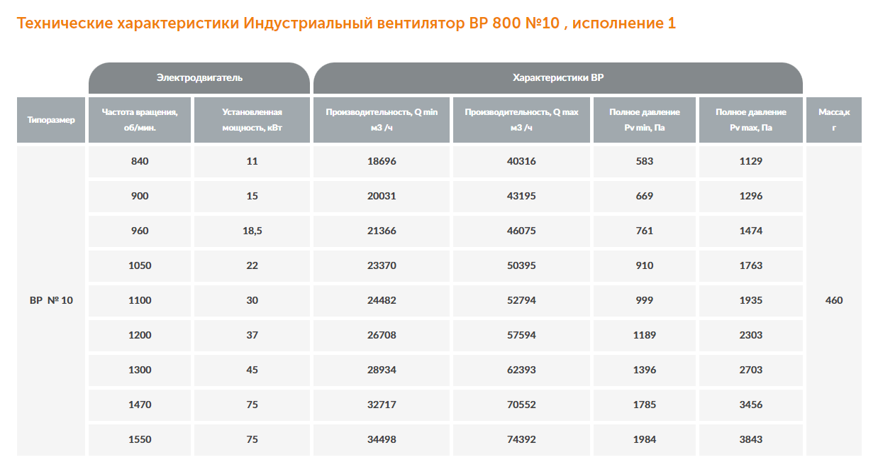 Радиальный индустриальный вентилятор ВР 800-10 выпускается заводом-изготовителем в следующих исполнения: общепромышленное, теплостойкое, коррозионностойкое, коррозионно-теплостойкое, взрывозащищенное, взрывозащищенное коррозионностойкое или сейсмостойкое. Вентиляторы ВР 800 №10 предназначены для перемещения чистого или слегка загрязненного воздуха и используются в составе воздухообменных систем на объектах жилого, общественного и производственного назначения.