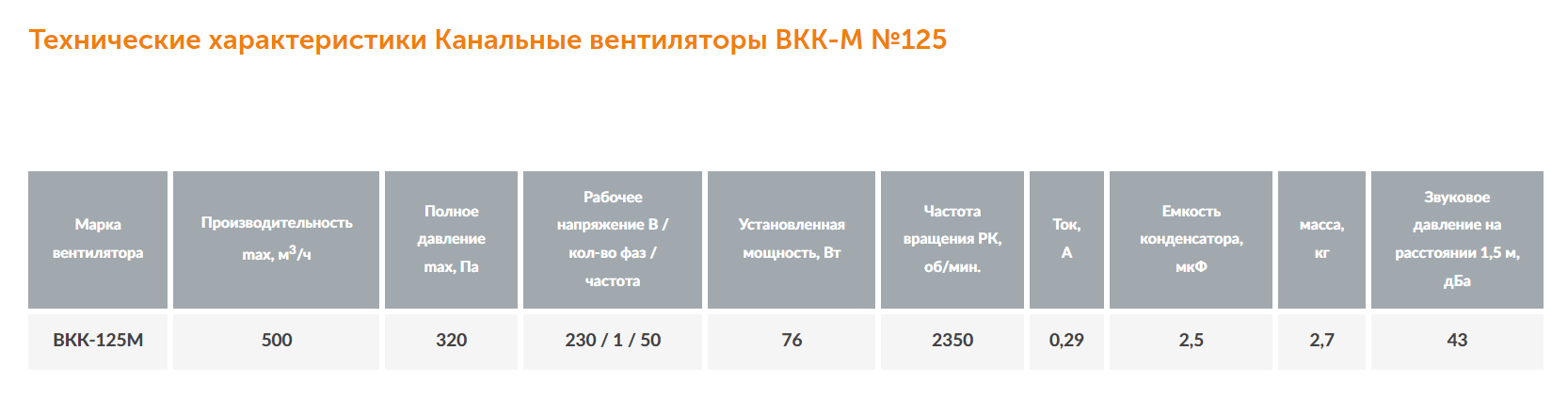 Заводская гарантия на вентилятор ВКК-125 составляет 24 месяца.