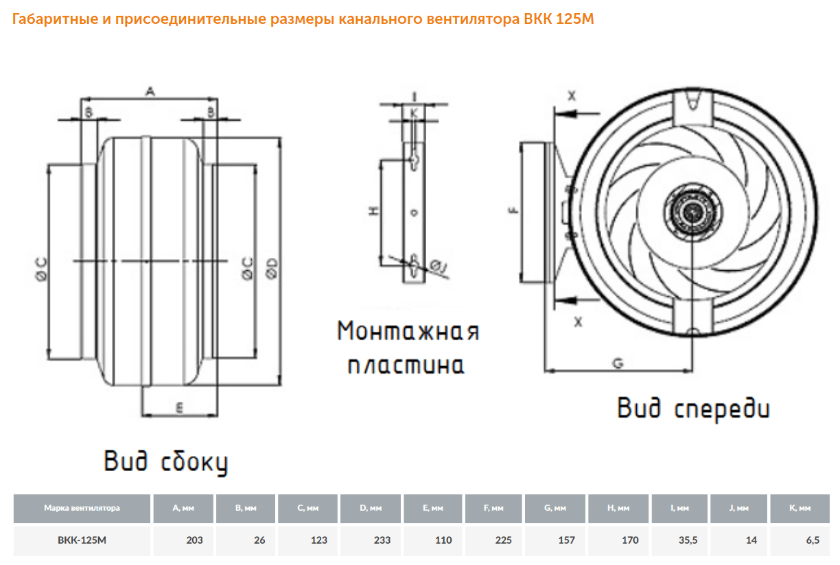 Основные конструктивные элементы вентилятора круглого канального ВКК- М: