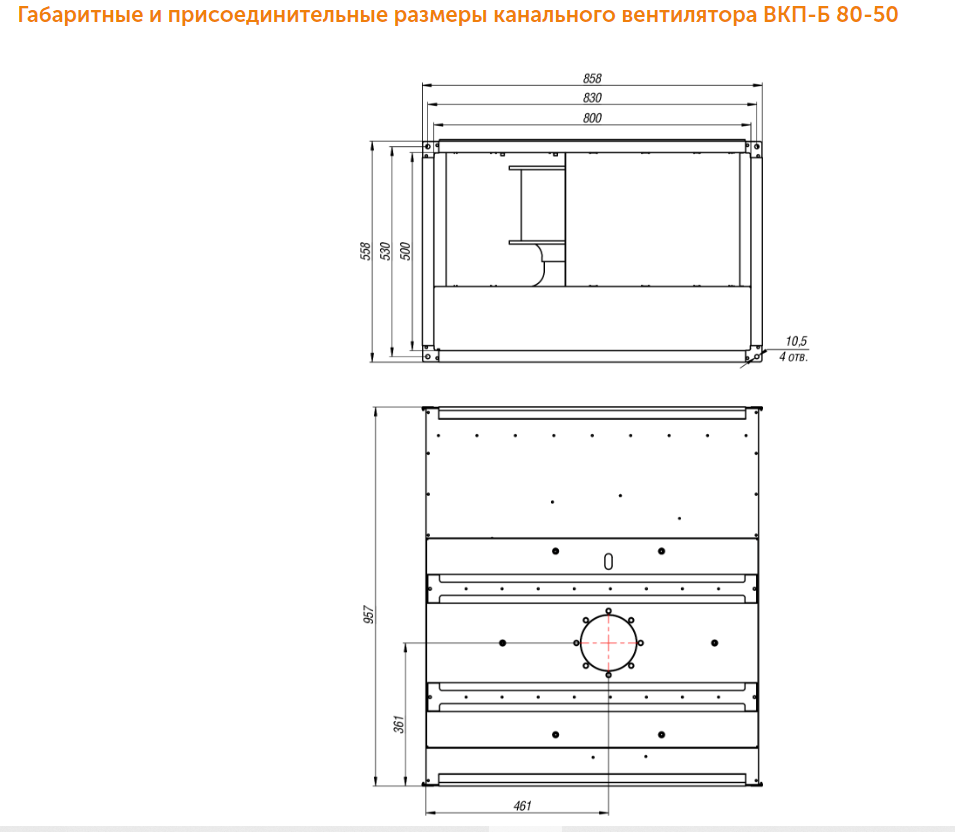 Вентилятор канальный ВКП-Б 80-50 для прямоугольных каналов из оцинкованной стали, устанавливается в воздуховоды, крепление фланцевое.