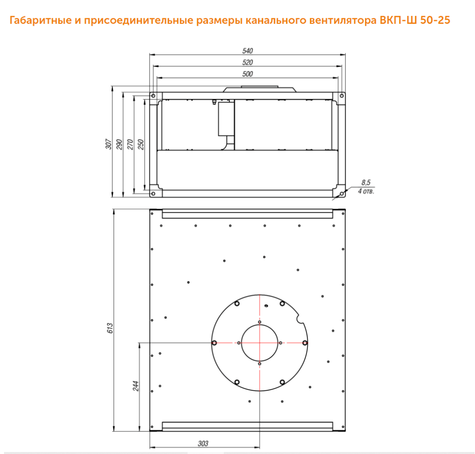 Основные узлы и детали канального вентилятора ВКП-Ш: