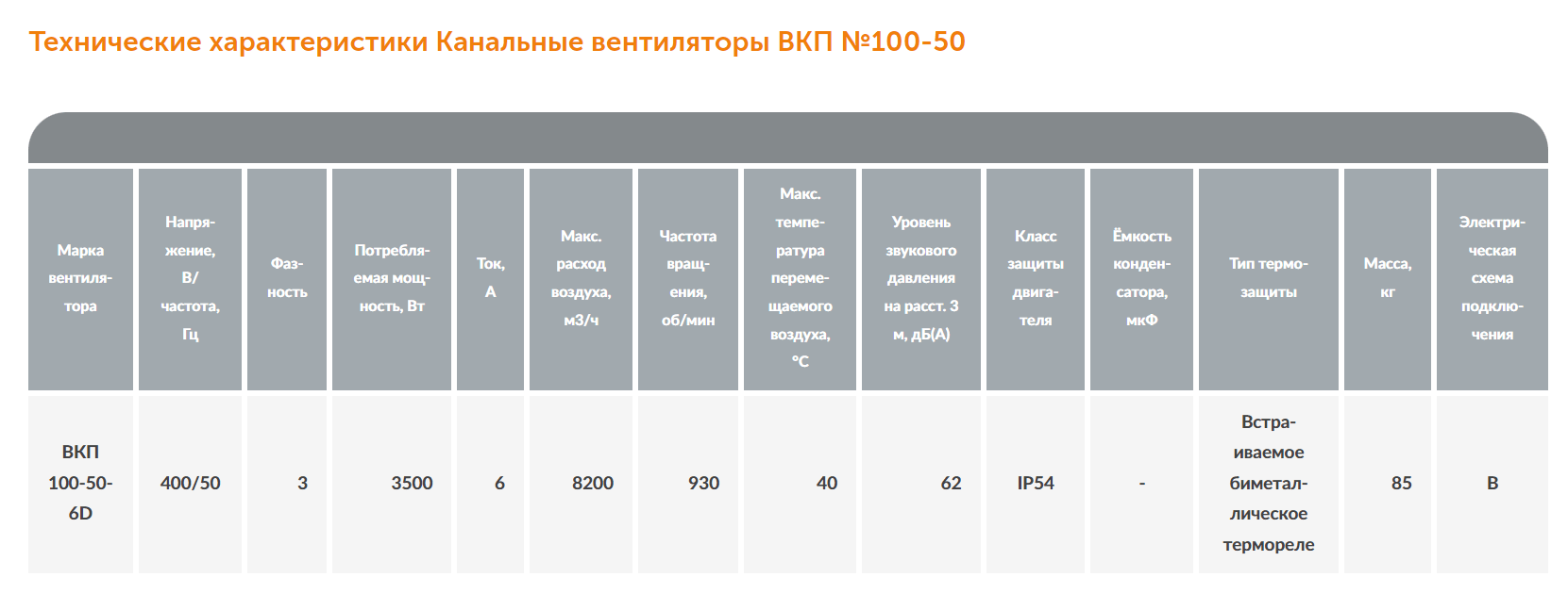 Канальные вентиляторы ВКП выпускаются моноблочными в полностью собранном и готовом к монтажным работам виде. Конструктивно вентилятор ВКП представляет собой коробчатый корпус прямоугольного сечения из тонколистовой оцинкованной стали, в котором размещены рабочее колесо радиального типа с загнутыми вперед лопастями и асинхронный электропривод (одно- или трехфазный).