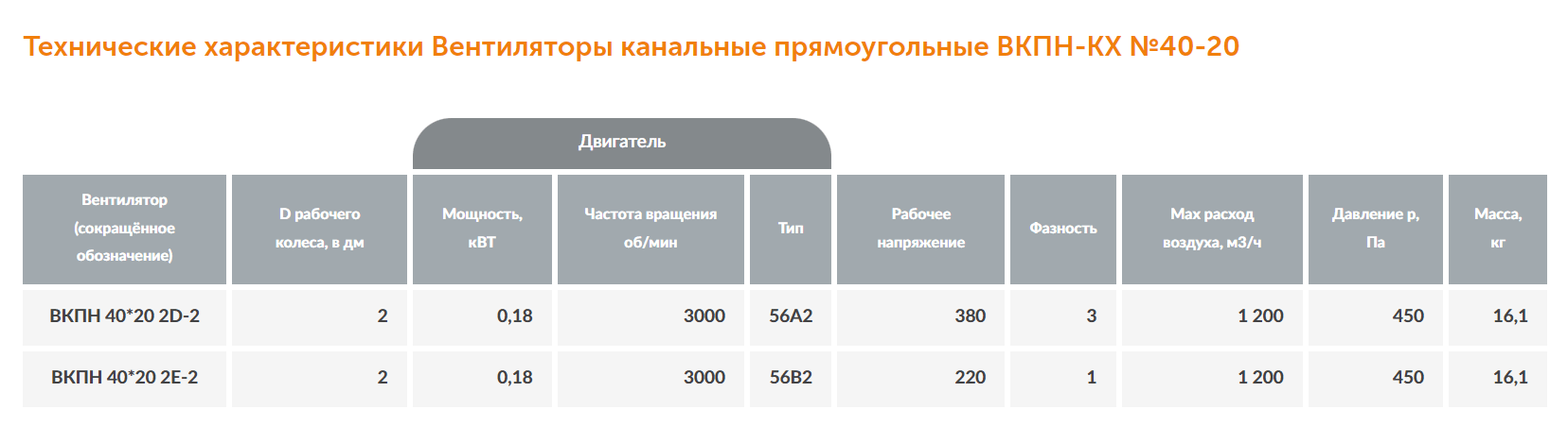 Канальный вентилятор прямоугольный ВКПН-КХ №40-20
