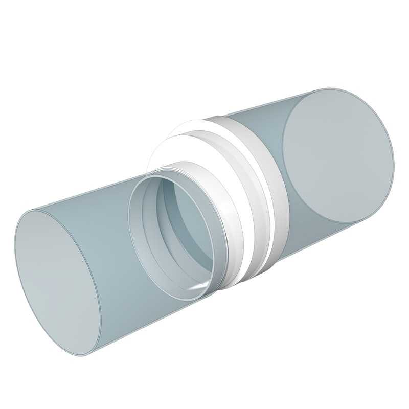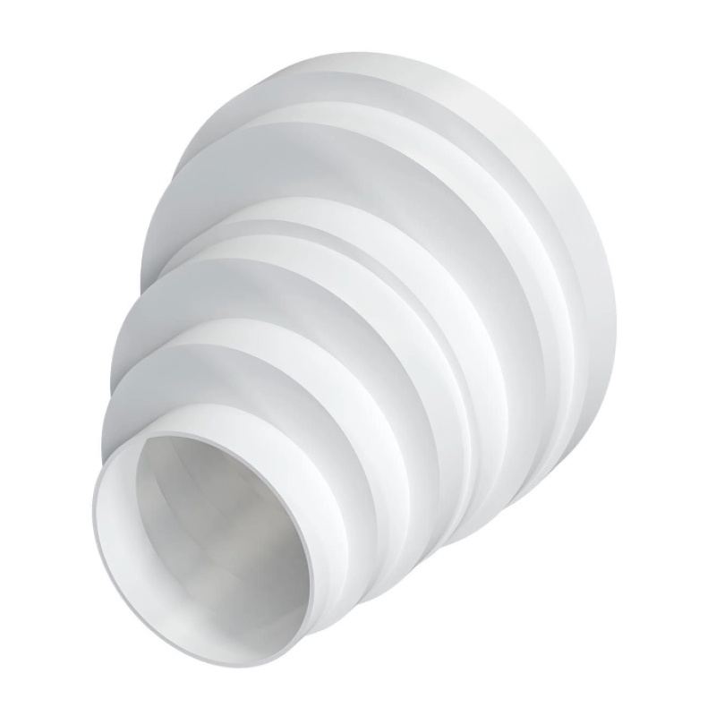 Используется для соединения каналов разных диаметров. Корпус подрезается для получения редуктора с необходимыми диаметрами. Соединение осуществляется напрямую с воздуховодами.