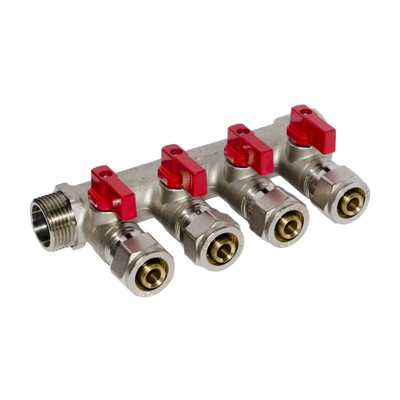 Используется в трубопроводах холодного (в том числе питьевого) и горячего водоснабжения, отопления, сжатого воздуха, а также в технологических трубопроводах, транспортирующие жидкости для равномерного распределения от главного трубопровода к сантехническим приборам и другим потребителям без потери давления. Позволяет изолировать часть системы в случае неисправностей и проводить ремонт, не производя при этом общего отключения водоснабжения. Используется для разделения потока воды из одной трубы на четыре линии, путем присоединения сантехнических элементов диаметром 16 мм методом обжима. Имеет с одного входа внутреннюю резьбу 3/4″ (20 мм) с другого входа наружную резьбу 3/4″ (20 мм), что поволяет соединять коллекторы между собой увеличивая количество отводимых линий.