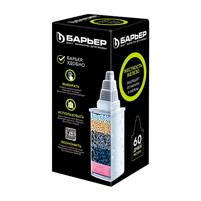 Предназначена для комплексной очистки воды от солей жесткости, тяжелых металлов, органических и неорганических примесей, хлора и хлорорганических примесей. Кассета подходит ко всем кувшинам ТМ «Барьер».