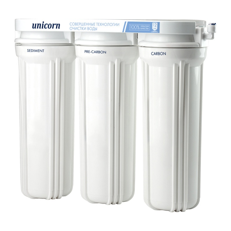 Предназначен для очитски воды от механических примесей, хлора и его соединений, устранения мутности, неприятного запах и вкуса. Трехступенчатый фильтр для доочистки воды, снабженный тремя фильтрующими картриджами стандартных размеров. Устанавливается под кухонной мойкой и подключается к водопроводу с помощью хромированного латунного адаптера.