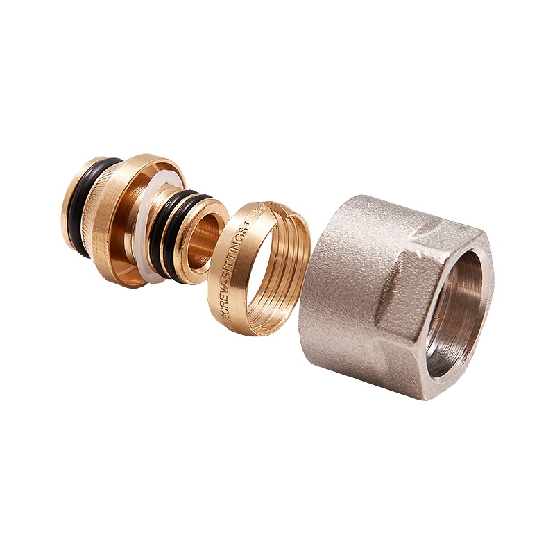 Предназначен для подключения металлополимерной трубы к коллектору с выходами диаметром 3/4″, стандарт соединения — «евроконус». Латунный фитинг с накидной гайкой и обжимным кольцом.