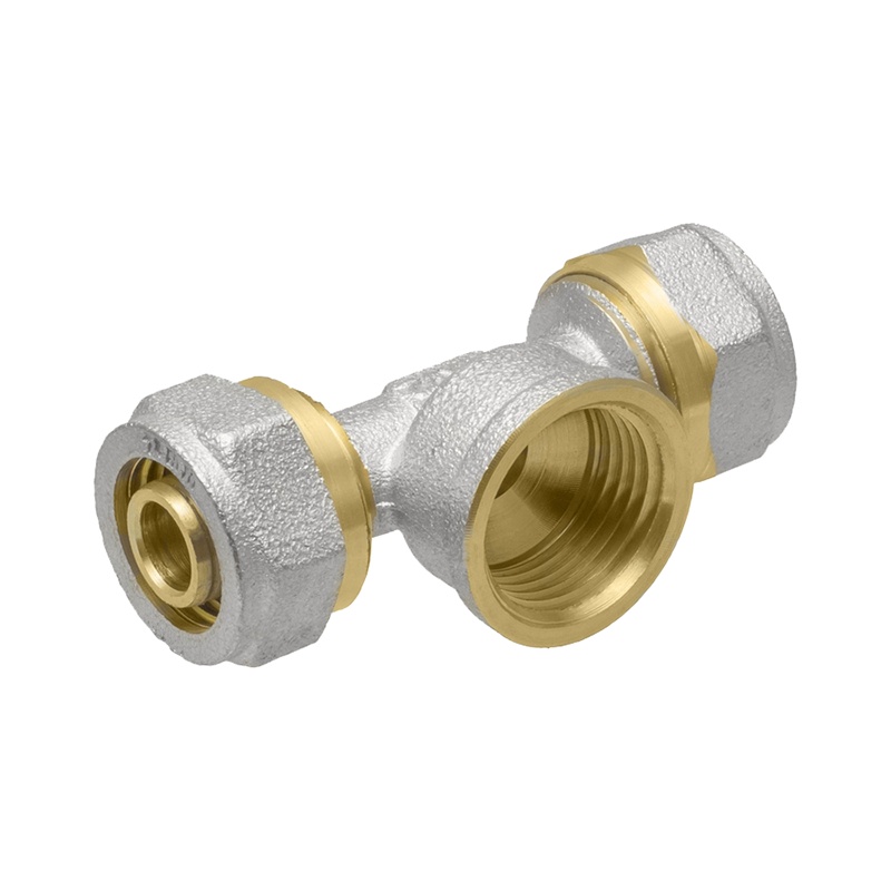 Предназначен для разделения потоков воды. Имеет два выхода для соединения металлопластиковых труб диаметром 16 мм методом обжима и один выход с внутренней резьбой 1/2″ (16 мм).